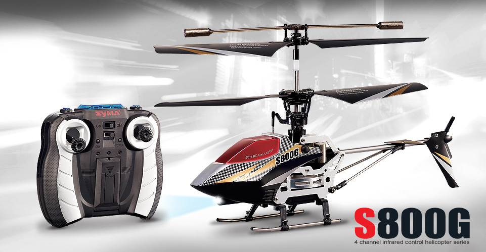 Niezwykle precyzyjny model. 4kanałowy helikopter nowość od Syma. Estetycznie dopracowany każdy szczegół. Aluminiowa konstrukcja, stabilizacja lotu (gyro) oraz zastosowanie serwomechanizmów pozwolą na wykonywanie najróżniejszych manewrów w każdym kierunku! Ten model producenta SYMA (s800G) jest jednym z najbardziej znanych,popularnych i lubianych zabawek zdalnie sterowanych na świecie! Helikopter posiada specjalny żyroskopowy system auto-stabilizacji lotu GYRO dzięki czemu manewrowanie śmigłowcem jest bardzo precyzyjne. Model jest bardzo zwrotny dzięki czemu precyzyjnie wykonuje polecenia pilota choć w pierwszej fazie nauki pilotażu wymaga nabycia niezbędnej wprawy.