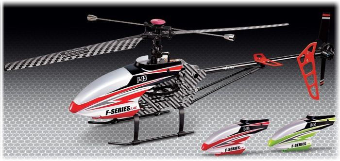 Aluminiowa konstrukcja , stabilizacja lotu (gyro) oraz silniki pozwolą na wykonywanie najróżniejszych manewrów w każdym kierunku! Helikopter F645 (F45) jest jednym z najbardziej znanych,popularnych i lubianych zabawek zdalnie sterowanych na świecie! Helikopter posiada specjalny żyroskopowy system auto-stabilizacji lotu GYRO dzięki czemu manewrowanie śmigłowcem jest bardzo precyzyjne. Helikopter wykonany jest z solidnych materiałów co wspomaga jego wytrzymałość na wstrząsy, upadki i inne uszkodzenia mechaniczne. Dodatkowym atutem są bardzo mocne i elastyczne łopaty EXTREME. Idealne do trenowania i dla początkujących.Zastosowano system serwomechanizmów a w nadajniku wbudowano duży elegancki wyświetlacz LCD.