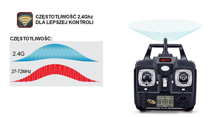 TECHNOLOGIA 2,4GHzW modelu F3 zastosowano przesyłu sygnału w technologii 2.4 GHz która poprawia stu krotnie szybkość oraz jakość transmisji sygnału. | ![]() |