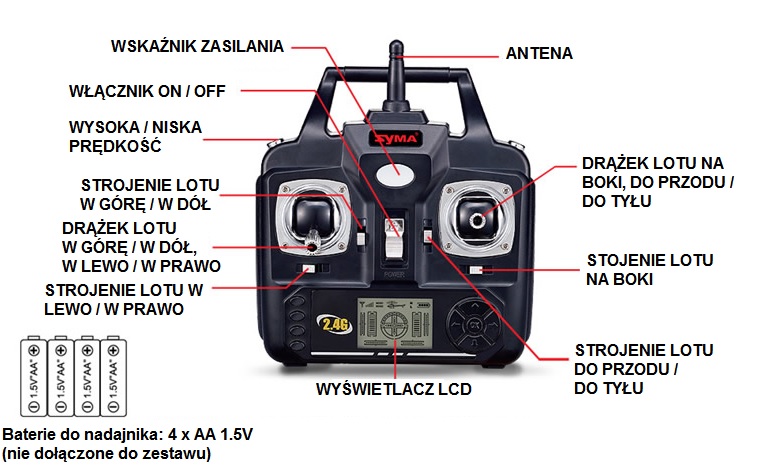 NADAJNIK Z EKRANEM LCDDodatkowo pilot sterującym śmigłowcem został wyposażony w wyświetlacz LCD pokazujący wszystkie najważniejsze parametry lotu. | ![]() |