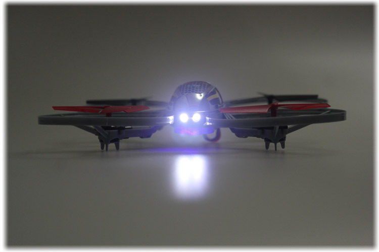 Ze względu na swoje uniwersalne wymiary Syma X4 sprawuje się również bardzo dobrze nawet w niewielkich pomieszczeniach. Jeśli na zewnątrz pogoda "pod psem" śmiało możesz prowadzić loty w swoim pokoju. Intensywne oświetlenie pozwala na latanie po zmroku dodając zabawie jeszcze więcej niezwykłych przeżyć.