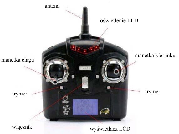Nadajnik wyposażony jest w wyświetlacz LCD dzięki czemu pilotowanie jest łatwiejsze i precyzyjniejsze.