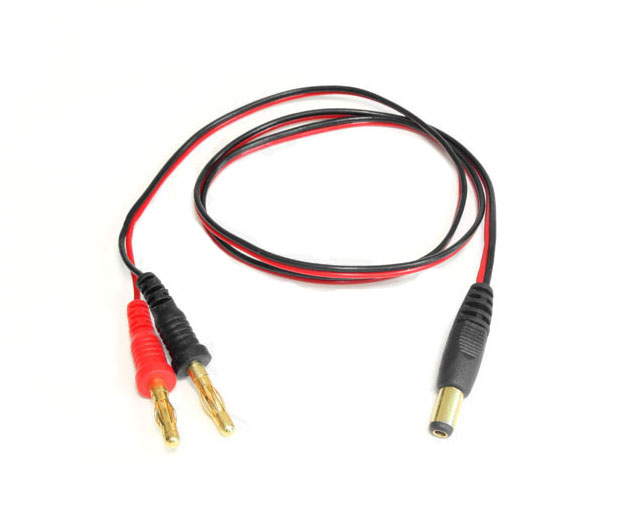 Adapter (przedłużacz) pomiędzy zarobionymi wtykami typu "Gold" 4mm a wtyczką typu "Jack" 2,5 mm, idealny do ładowania pakietów 9,6V w nadajnikach z ładowarki procesorowej.