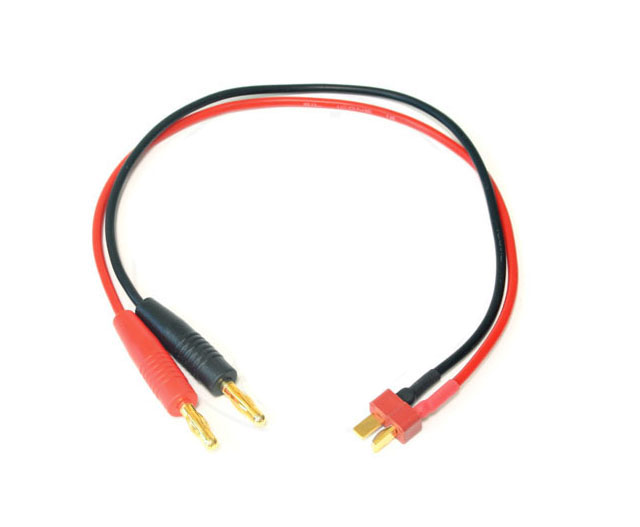 Adapter (przedłużacz) pomiędzy zarobionymi wtykami typu "Gold" 4mm a wtyczką Dean, pomocny np. przy ładowaniu pakietów akumulatorów z wyjściem Dean.