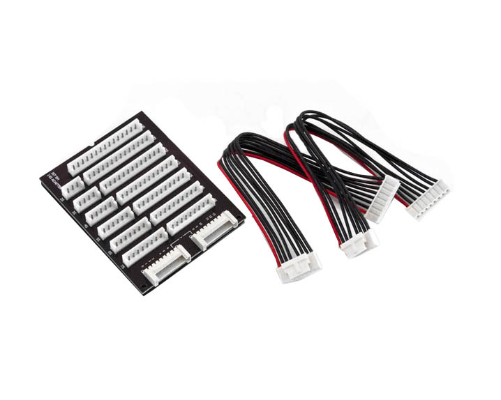 Adapter do ładowania ogniw litowych (od 2 do 14 cel) z wtyczkami do balancera typu Graupner/Kokam (JST EH). Wyjście z adaptera to gniazdo na 8 przewodów.