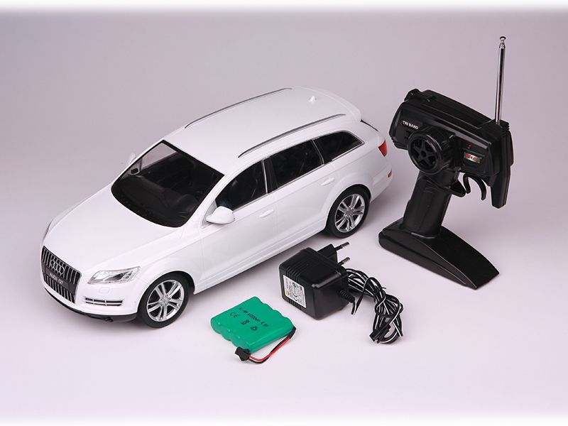 Model popularnego samochodu Audi Q7. Podczas jazdy efektownie świecą przednie oraz tylne światła. Model występujący w 3 różnych kanałach częstotliwości dając przy tym maksimum rywalizacji! Samochód gotów do jazdy, w zestawie znajduje się cały komplet, ładowarka, akumulator, baterie do pilota, model samochodu! Kupujesz więc jednorazowo, bez obaw o brak baterii czy niezbędnych elementów do użytkowania modelu.