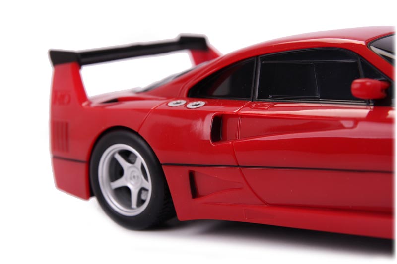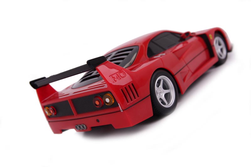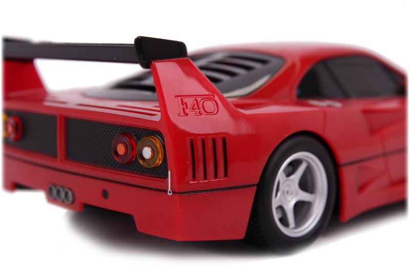 Ferrari F40 Competizione jest produkowane na licencji, czyli samochód jest odwzorowany co do pierwowzoru motoryzacyjnego. Dodatkowo świecą się przednie oraz tylne światła co nadaje samochodowi realny wygląd podczas jazdy. Ta sportowa wersja tego popularnego włoskiego modelu sprawi radość nie tylko dzieciom, ale i także miłośnikom mocnych i szybkich samochodów.