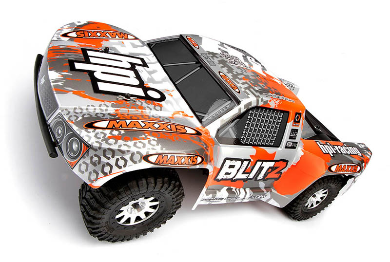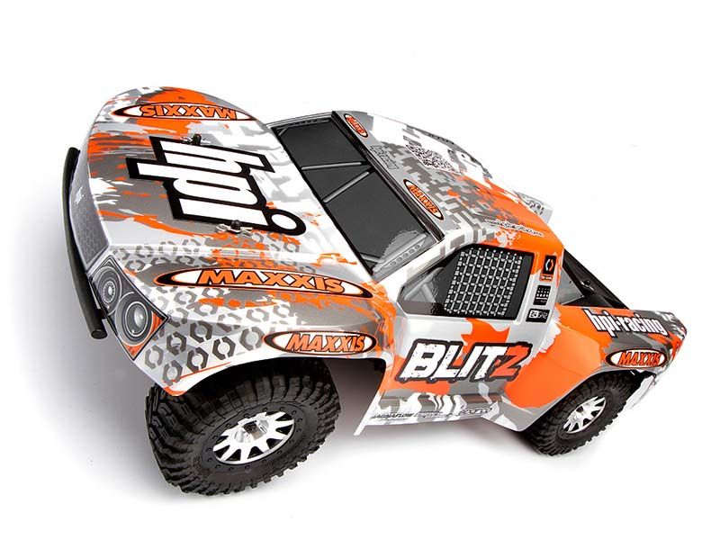 Model short course HPI Blitz który podbił rynek niczym burza łącząc w sobie wszystko co najlepsze trwałość, wydajność, wygląd, styl i innowacyjność wszystko w jednym pudełku, powraca w jeszcze lepszym wydaniu! Blitz przeszedł metamorfozę, pełen nowych dodatków po raz kolejny ustanowił precedens jako najlepszy samochód short course na rynku! Nowy Blitz RTR wyposażono w wysokiej jakości aparaturę 2.4GHz niewymagającą stosowania kryształów a także z całkowicie nowy wodoodporne serwo SC-15WP ESC i odbiornik z osłoną aby umożliwić czerpanie wrażeń z jazdy w mokrych warunkach. Zwieńczeniem wszystkich wprowadzonych ulepszeń jest całkowicie nowa karoseria pomalowana karoseria Scorpion.