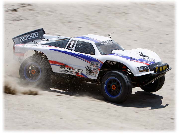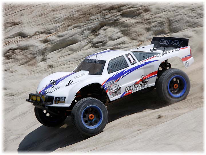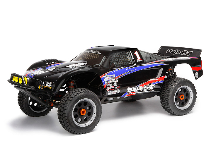 Już pojawił się w naszej ofercie model RTR Baja 5T wykonany w skali 1:5, poszerzając rodzinę modeli Baja 5B. Model Baja 5T otrzymał od projektantów agresywny, rasowy wygląd oraz wiele nowych cech wpływających na polepszenie jego osiągów. Pozostał on jednak kompatybilny z wieloma częściami zamiennymi i opcjonalnymi stosowanymi w modelach Baja 5B. Twórcy Baja 5T zostali zainspirowani ostatnia generacja samochodów terenowych, które rywalizują w najsłynniejszym wyścigu Baja 1000 w Meksyku. Karoseria została zaprojektowana tak, aby idealnie pasowała do podwozia modelu Baja 5T. Pojazd jest fabrycznie złożony i gotowy do jazdy zaraz po wyjęciu z pudelka. Przedni zderzak, opony do jazdy off-road oraz wyjątkowe felgi sprawiają, ze Baja 5T wygląda jak na starcie wyścigu w Ensenadzie.
