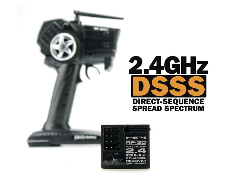 Wszystkie modele Baja, wlaczajac 5T truck and 5B buggy, sa teraz wyposazone w nowoczesny system radiowy HPI 2.4GHz! Oznacza to, ze otrzymujecie mozliwosc korzystania z technologii DSSS (bezposrednie modulowanie nosnej sekwencja kodowa). Wystarczy wlaczyc radio i nie musicie sie juz wiecej martwic jakiego kanalu uzywaja inni.