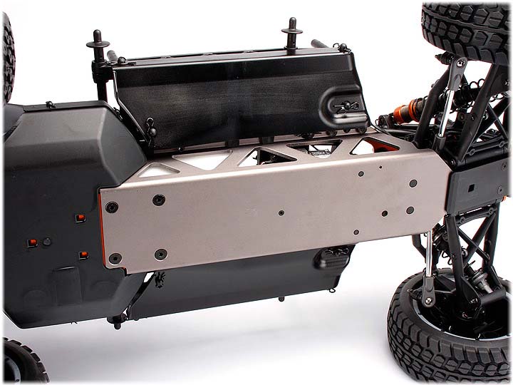OslonyBoki modelu sa chronione przez nowe oslony, które odbijaja brud i gruz co sprawia, iz pózniejsze czyszczenie Baja 5T jest o wiele latwiejsze. Co wiecej oslony te minimalizuja zuzycie i scieranie elementów. Równiez silnik posiada specjalne oslony zamontowane w celu jego lepszego chronienia przed uszkodzeniami.. |