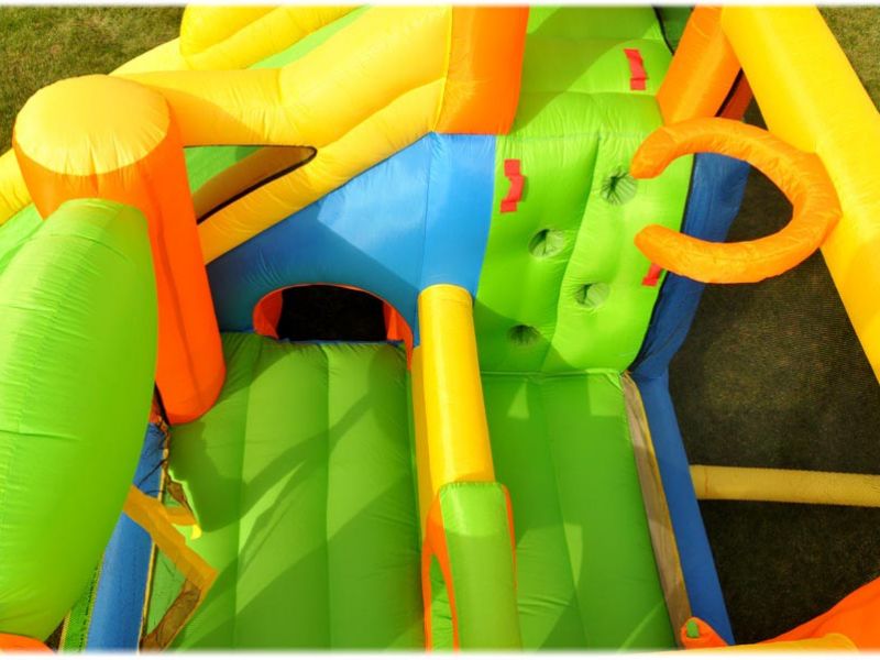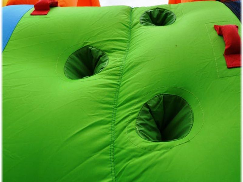 Cała konstrukcja dmuchańca powstała w wyniku zastosowania specjalnych, przepuszczających powietrze tkanin, połączonych ze sobą przy pomocy wzmocnionych szwów. Elektryczna dmuchawa, dostarczona wraz z dmuchańcem, uzupełnia uciekające przez tkaninę i szwy powietrze, co pozwala dzieciom bezpiecznie bawić się i lądować na miękkiej powierzchni konstrukcji.