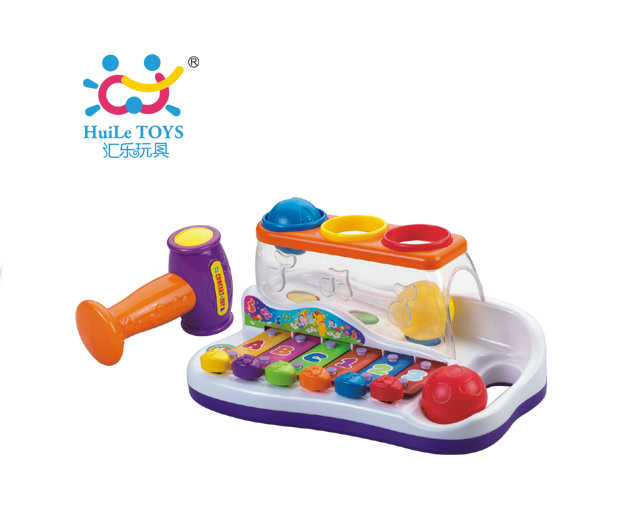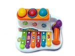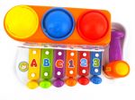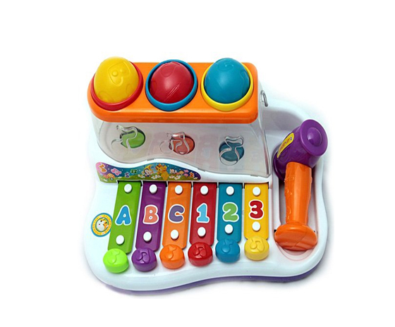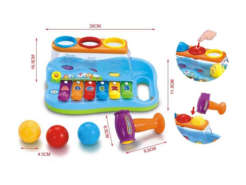 Żywa kolorystyka i różnorodne faktury 3 kuleczek pobudzają zmysł dotyku i wzroku dając mu radość z efektów swojej nowej zabawy. Kuleczki wbija się młoteczkiem, aby wyzwolić z instrumentu dźwięki. Po umieszczeniu ich w środku, rynienką wylatują z boku, zachęcając do dalszej zabawy.