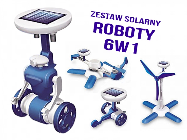 Solarny robot 6 w 1 to edukacyjny zestaw do samodzielnego składania robotów zasilanych światłem. Do ich zmontowania nie potrzebujesz żadnego kleju czy narzędzi.