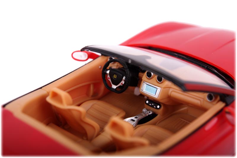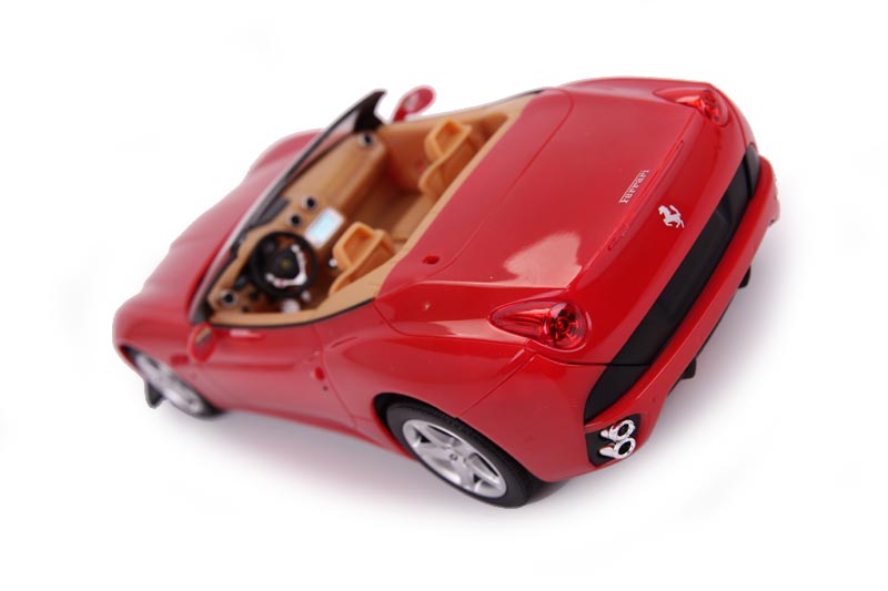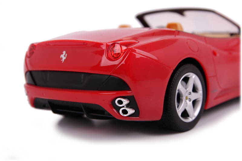 Ferrari California jest produkowane na licencji, czyli samochód jest odwzorowany co do pierwowzoru motoryzacyjnego. Dodatkowo świecą się przednie oraz tylne światła co nadaje samochodowi realny wygląd podczas jazdy. Ta sportowa wersja tego popularnego włoskiego modelu sprawi radość nie tylko dzieciom, ale i także miłośnikom mocnych i szybkich samochodów.