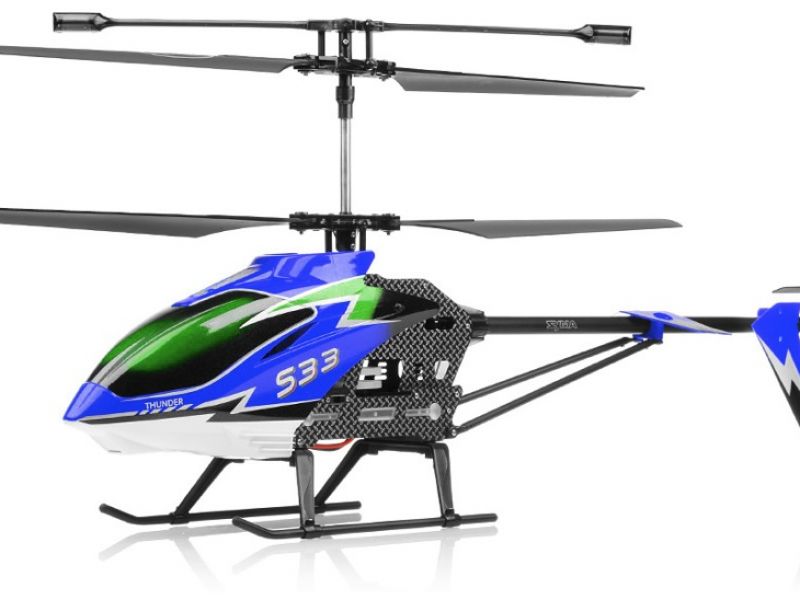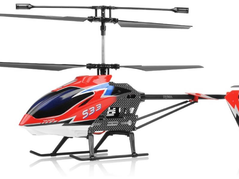 Syma S33 to 3-kanałowy helikopter z wbudowanym żyroskopowym systemem stabilizacji, który możemy kontrolować go w kierunkach: góra/dół, do przodu/do tyłu oraz obrót w lewo/prawo.