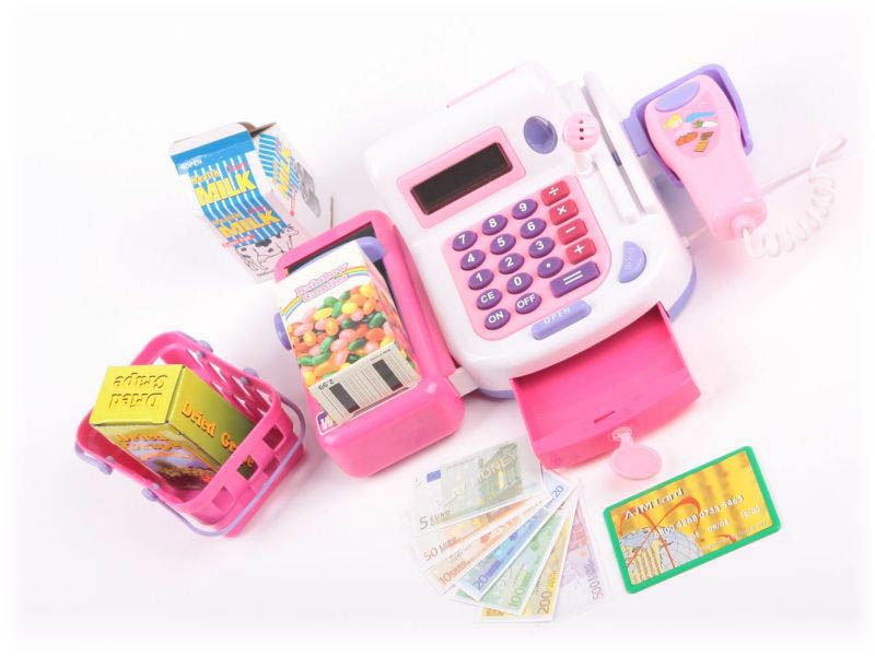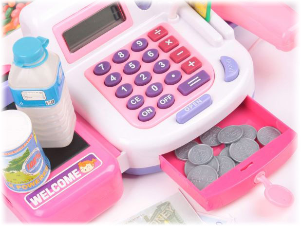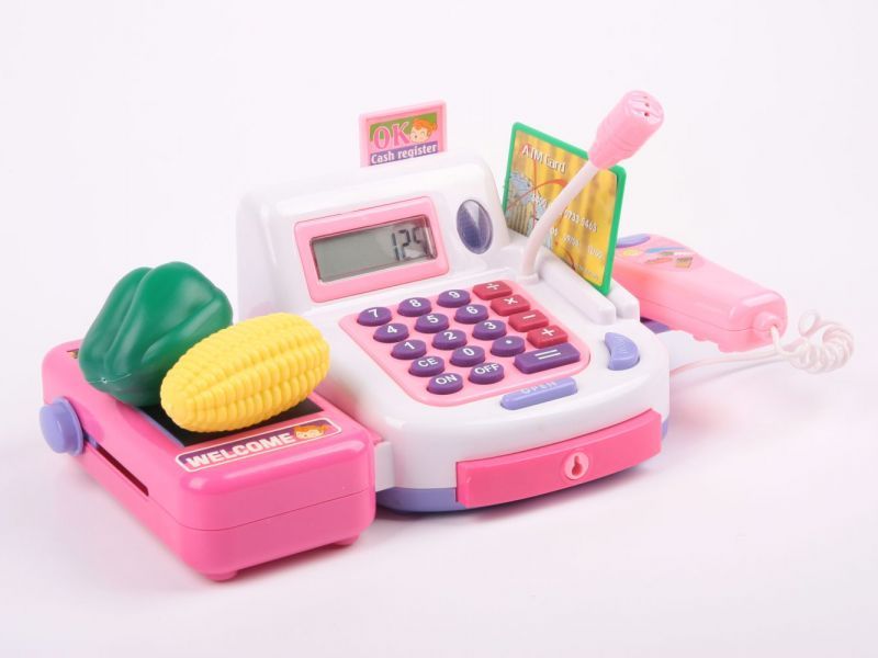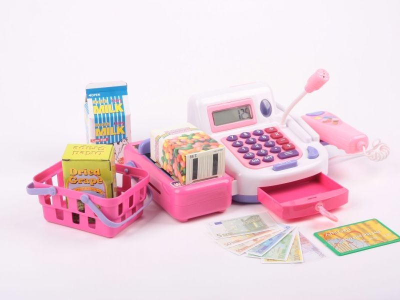 Edukacyjno-interaktywna zabawka. Kasa posiada mikrofon oraz wbudowany kalkulator.