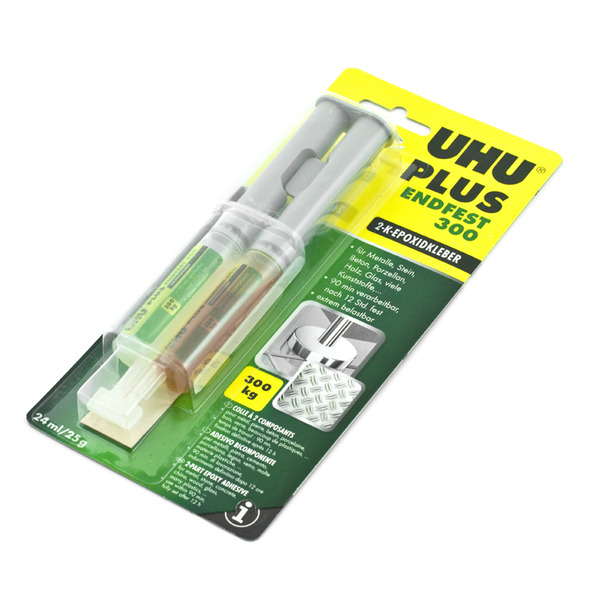 Klej dwuskładnikowy na bazie żywic epoksydowych w dwukomorowej strzykawce, która ułatwia aplikację kleju. Jest przezroczysty zaraz po wyschnięciu, odporny na uderzenia, starzenie i wodę. Klej nadaję się do: metalu, szkła, porcelany, ceramiki, drewna, marmuru, kamienia, betonu, tworzyw sztucznych, sztywnego PVC, gumy, twardych pianek. Nie nadaje się do dużych powierzchni szklanych, PE lub PP.