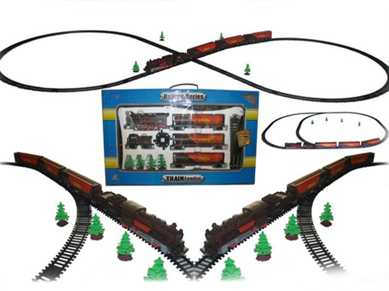 Netto: 65,00 PLNCały zestaw można układać w dowolnych konfiguracjach. Bardzo proste łączenie torów Lokomotywa zasilana jest na 2 baterie R6.