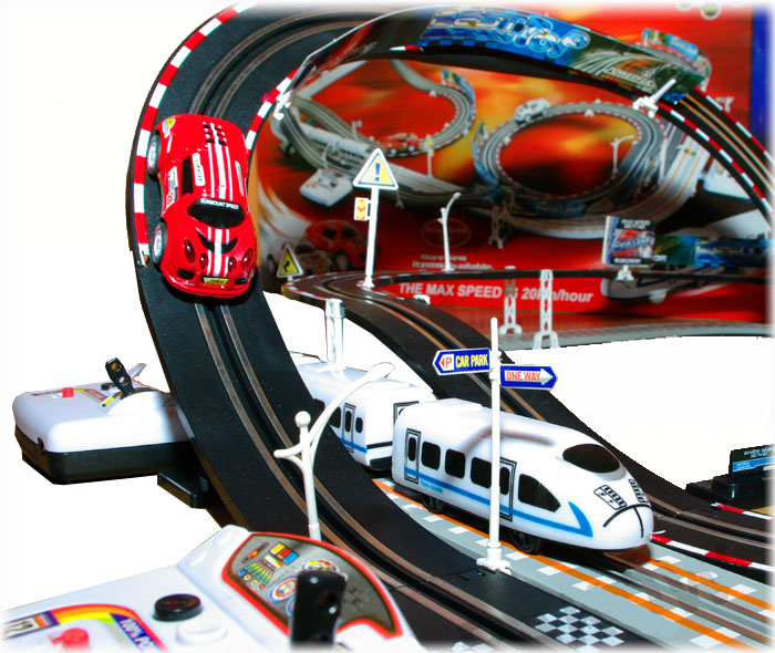 Netto: 81,26 PLNMega zestaw duży tor wyścigowy + kolejka elektryczna. Zabawka o której marzy każdy chłopiec