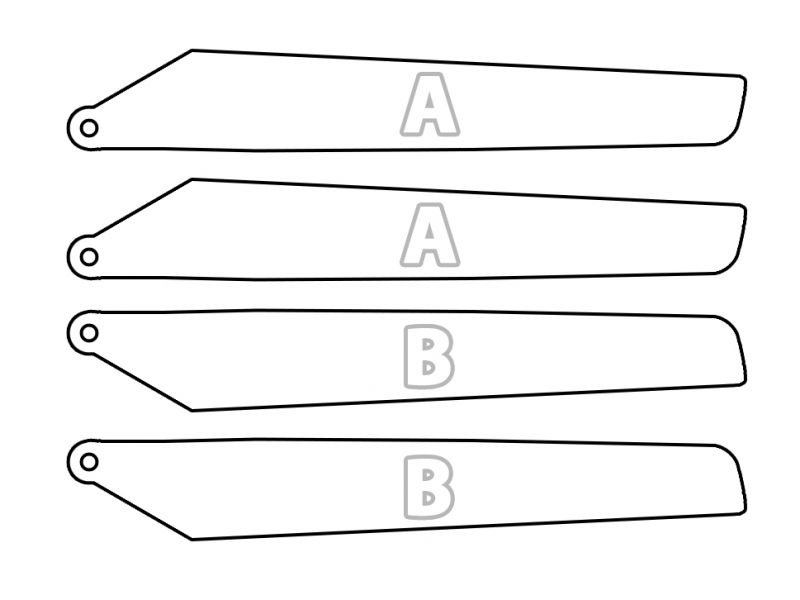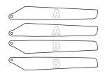 W zestawie znajdują się dwie sztuki łopat górnych (A) oraz dwie sztuki łopat dolnych (B)