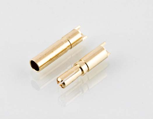 Komplet pozłacanych konektorów typu "banan" (wtyk + gniazdo) 3,5 mm o płaskiej (powiększonej) powierzchni styku.