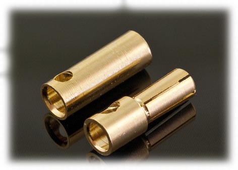 Komplet pozłacanych, długich konektorów typu "banan" (wtyk + gniazdo) 5,5 mm.