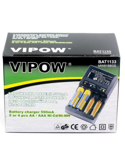 Netto: 38,21 PLNŁadowarka VIPOW AA/AAA Z Funkcją Rozładowania.