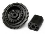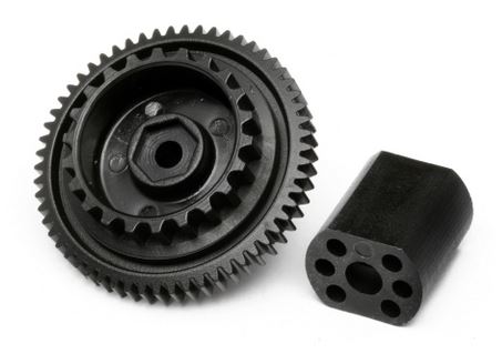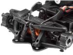 Napęd paskowyNapęd modelu się na pasku napędowym oraz uszczelnionych łożyskach kulkowych dla zapewnienia wytrzymałości i wydajności. Z centralnie zamontowanego silnika przez walcowe koło zębate, wał pośredni i centralne koło pasowe moc jest przekazywana do przedniego i tylnego mechanizmu różnicowego za pomocą wytrzymałych pasów napędowych zrobionych z uretanu dla zachowania wytrzymałości i odporności na ścieranie. | ![]() |