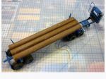 | W zestawie imitacje ładunku: drewniane bale oraz ramię dźwigu |