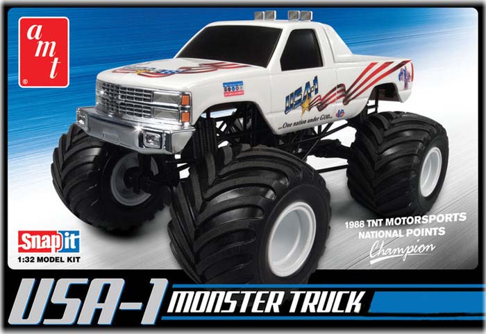 Model USA-1 4x4 Chevy Monster Truck Snapkit w skali 1:32, wyprodukowany przez amerykańską firmę AMT