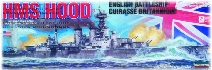 Model Okrętu wojennego HMS Hood w skali 1:400, wyprodukowany przez amerykańską firmę Lindberg.
