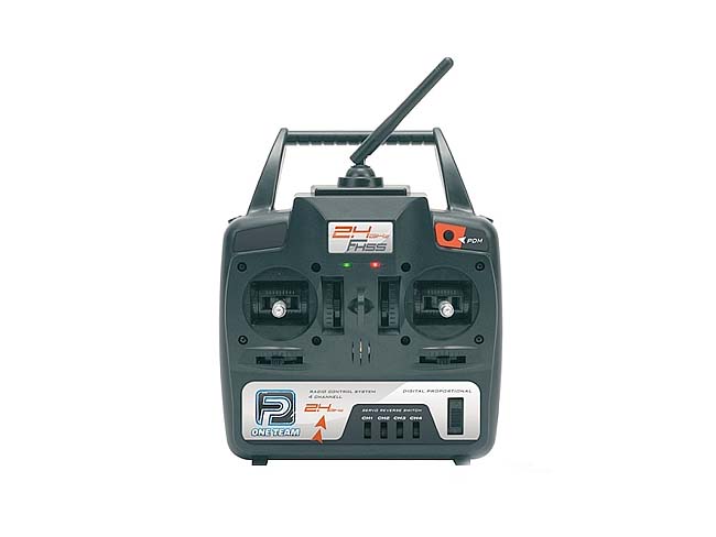 Zawarty w zestawie nadajnik współpracuje z odbiornikiem modelu w paśmie 2,4 GHz,