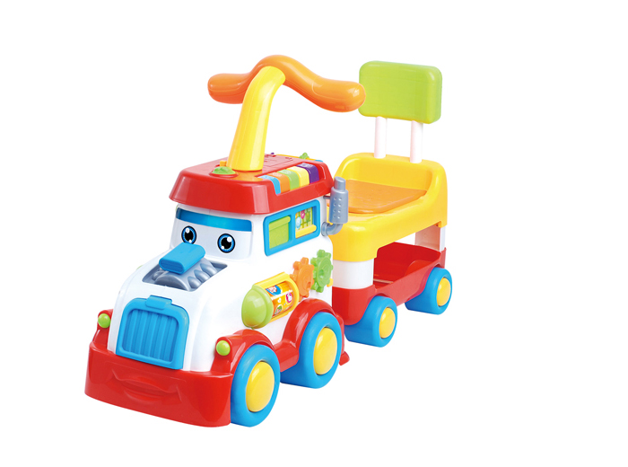 MUZYCZNA CIĘŻARÓWKA CHODZIK-PCHACZ-JEŹDZIK 3 W 1 (W WAGONIKU UKRYTY JEST NOCNICZEK)