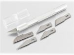 Netto: 21,79 PLNPłaski metalowy nóż do ogólnych zastosowań modelarskich z wymiennym, chowanym i dwustronnym ostrzem #9 oraz 5 ostrzami zapasowymi.