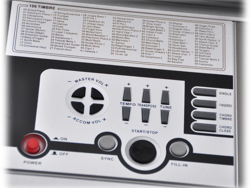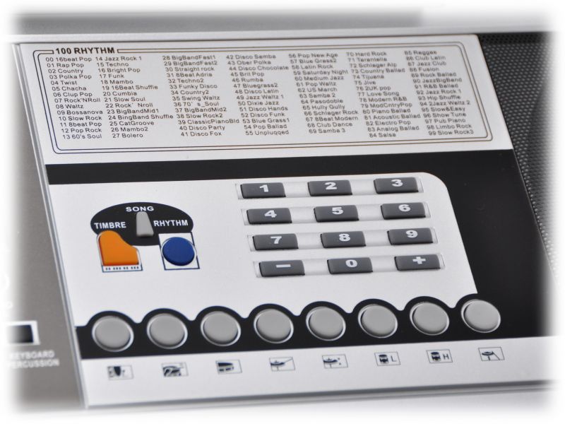 Ogromna ilość różnorodnych barw dźwiękowych, 5 oktaw, tryb nauki oraz utwory pokazowe. | ![]() |