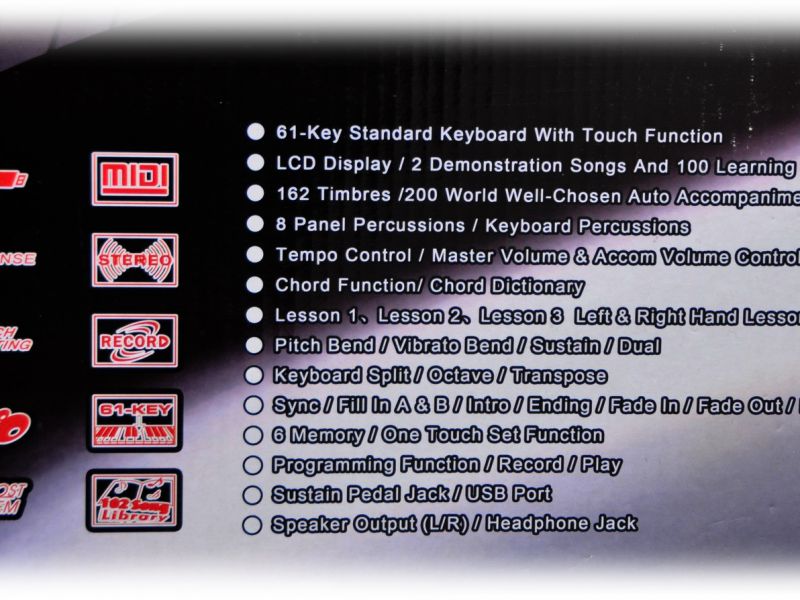 Klawisz nadaje się również dla amatorów, którzy dopiero uczą się gry na keyboardzie. 5 oktaw zapewniają różnorodne brzmienie, a pełnowymiarowe klawisze gwarantują ergonomiczną obsługę i komfort użytkowania. Klawisze mają miękki skok, nie przenoszą szkodliwych drgań na nadgarstki i przy kilkugodzinnej grze nie odczuwa się bólu. | ![]() |
