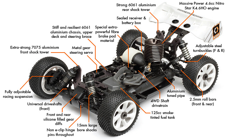 Silnik zastosowany w modelu to Nitro Star K4.6 HO. Zapewnia on doskonałe osiągi i czyni z modelu Pulse 4.6 jeden z najszybszych i najmocniejszych buggie!