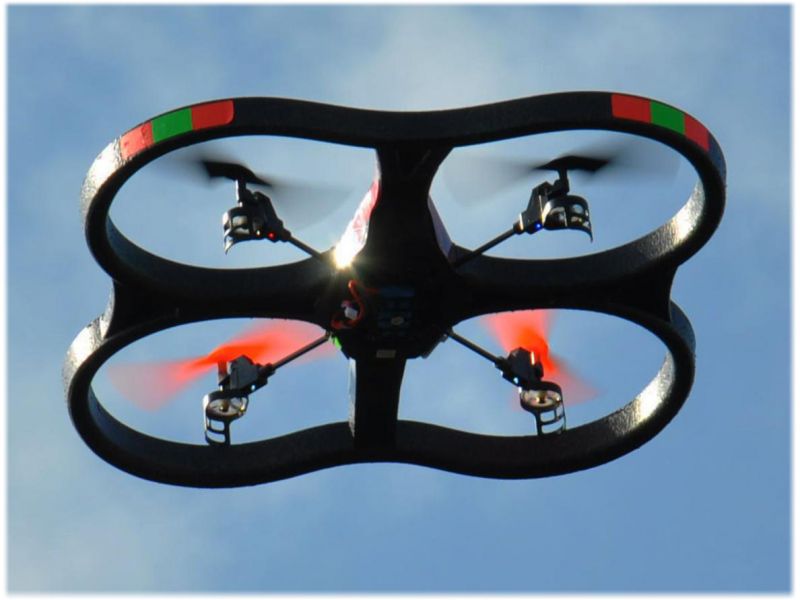 Zdalnie kierowany model wielowirnikowca z napędem elektrycznym i wbudowanym systemem kamery video.