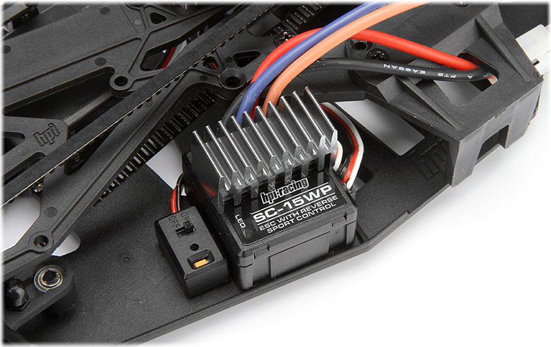 Wszystkie aktualne modele HPI są wyposażone w wygodne radio 2.4GHz zapewniające pełna kontrolę i umożliwiające korzystanie w pełni z walorów modelu. Radio posiada koło odpowiedzialne za skręcanie oraz spust, którym hamujemy i przyspieszamy modelem, 3 kanały, wygodne w użytkowaniu, składana antena, możliwość regulacji punktów końcowych, bieg wsteczny oraz opcja sterowania dual rate. Aparatura jest bardzo lekka z powodu zasilania tylko 4 bateriami AA Nie musisz się już martwić o zmianę kryształów czy na którym kanale jeździ inny kierowca dzięki technologii 2.4GHz, radio automatycznie przeciwdziała konfliktom częstotliwości i zmienia kanał za Ciebie, jeśli występuje zakłócenie! Jeśli samochód straci sygnał lub bateria moc, elektroniczny system pozwoli w sposób bezpieczny i kontrolowany zatrzymać samochód.