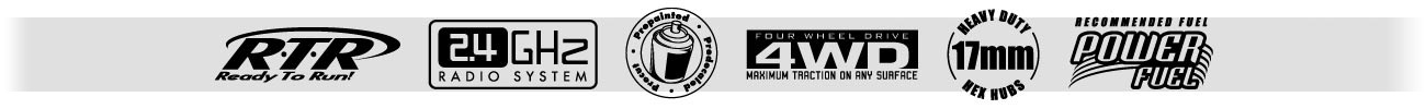 POPRAWIONA TRAKCJA4 potężne amortyzatory Big Bore pozwalają pokonywać modelowi najtrudniejszy teren. Nowe obudowy amortyzatorów pozwalają im pracować niezwykle płynnie. Nylonowa karoseria jest bardzo lekka a jednocześnie wytrzymała. | ![]() |