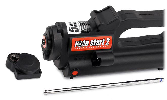 Roto Start 2 ma także funkcję bezpiecznika który chroni silnik. Jeśli zbyt duże obciążenie silnika jest spowodowane jego zalaniem przycisk Roto Start automatycznie zatrzyma samochód. Po wyczyszczeniu silnika zgodnie z załączona instrukcją po prostu wciśnij przycisk i uruchom silnik. Do zasilnia Roto Start 2 potrzebujesz standardowej baterii 6-cio celowej baterii oraz ładowarki RC.