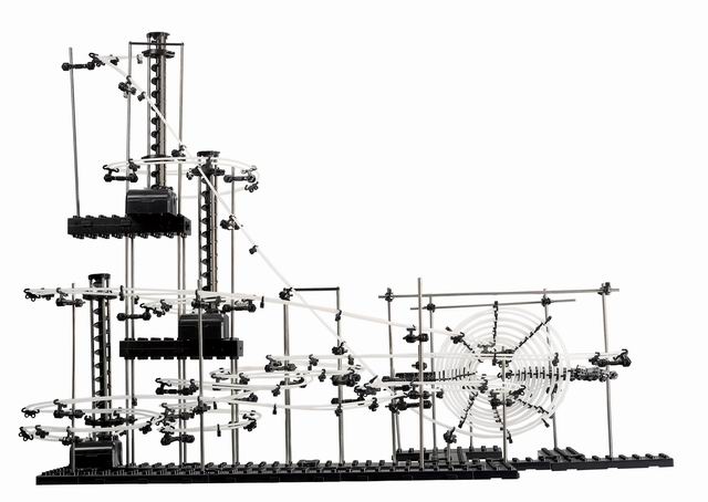Połączenie wszystkich elementów finalnie daje wielki tor, po którym wędrują metalowe kulki.