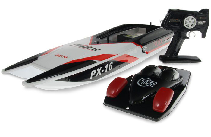 PX-16 jest szybką zdalnie sterowaną łodzią w stylu katamaranu.