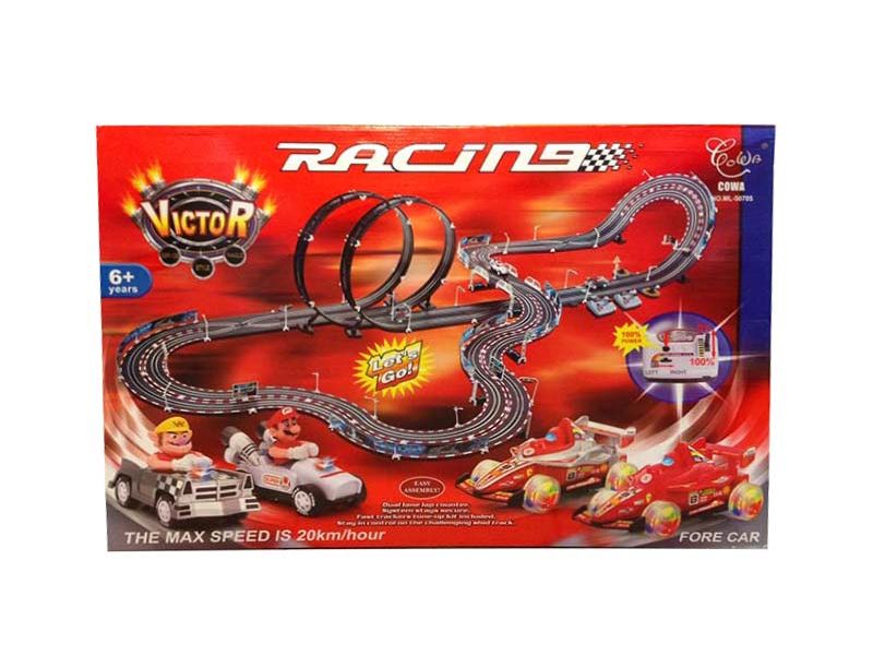 Dwupoziomowy tor wyścigowy o długości aż 765 cm (!) zagwarantuje totalnie odjechaną zabawę! Niebezpieczne zakręty i zjazdy, emocjonująca jazda po pionowej pętli, duże prędkości i zastrzyk adrenaliny – takie rzeczy kręcą Fernando Alonso, Sebastian Vettel’a i Roberta Kubicę. A od dziś – także Ciebie! Nie wierzysz? Przekonaj się sam, ile frajdy dostarcza taka jazda!