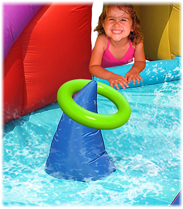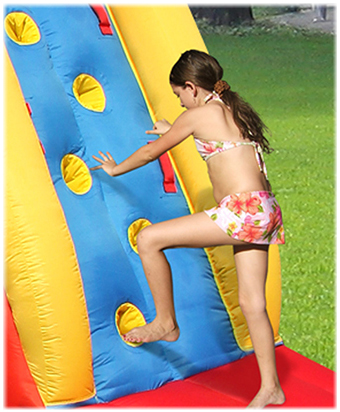 Cała konstrukcja dmuchańca powstała w wyniku zastosowania specjalnych, przepuszczających powietrze tkanin, połączonych ze sobą przy pomocy wzmocnionych szwów. Elektryczna dmuchawa, dostarczona wraz z dmuchańcem, uzupełnia uciekające przez tkaninę i szwy powietrze, co pozwala dzieciom bezpiecznie bawić się i lądować na miękkiej powierzchni konstrukcji.