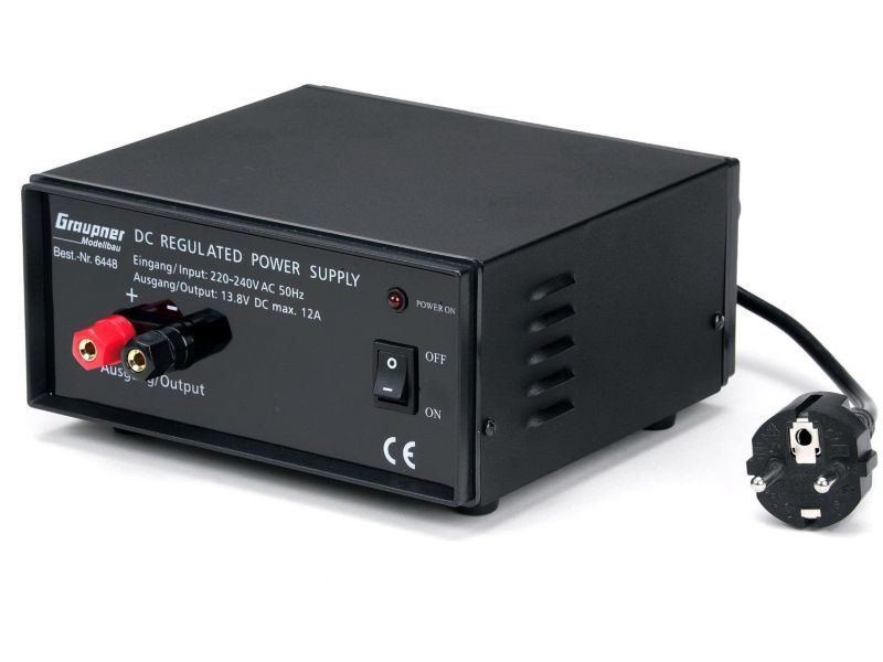 12-amperowy stabilizowany zasilacz sieciowy 13,8V marki Graupner - idealne źródło prądu dla procesorowych ładowarek modelarskich. Polecamy zawsze wtedy, gdy niezbędne jest zapewnienie pewnego, stabilnego źródła prądu o wysokim stabilizowanym amperażu (ciągły prąd 12A) do pracy ładowarek zasilanych prądem 12V w warunkach domowych.