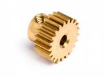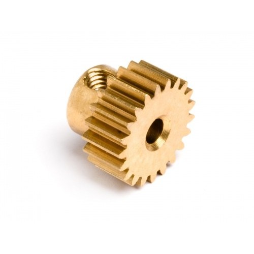 Oryginalna, mosiężna zębatka atakująca 21 zębów, moduł 0.6 z firmy Maverick. W komplecie śrubka imbusowa mocująca zębatkę do wału silnika.
