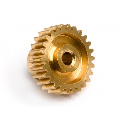 Oryginalna, mosiężna zębatka atakująca 26 zębów, moduł 0.6 z firmy Maverick. W komplecie śrubka imbusowa mocująca zębatkę do wału silnika.