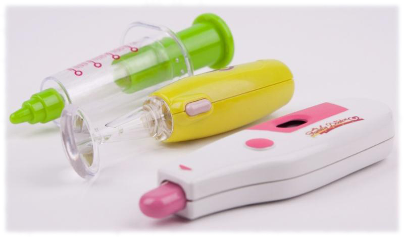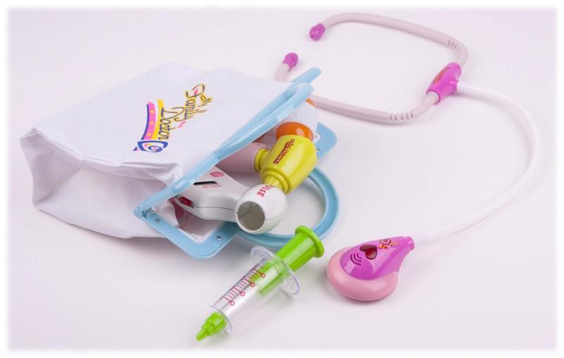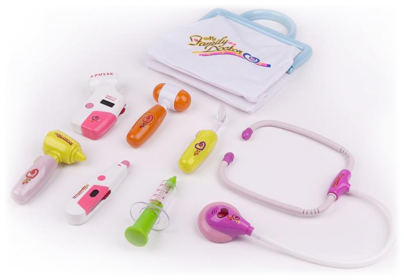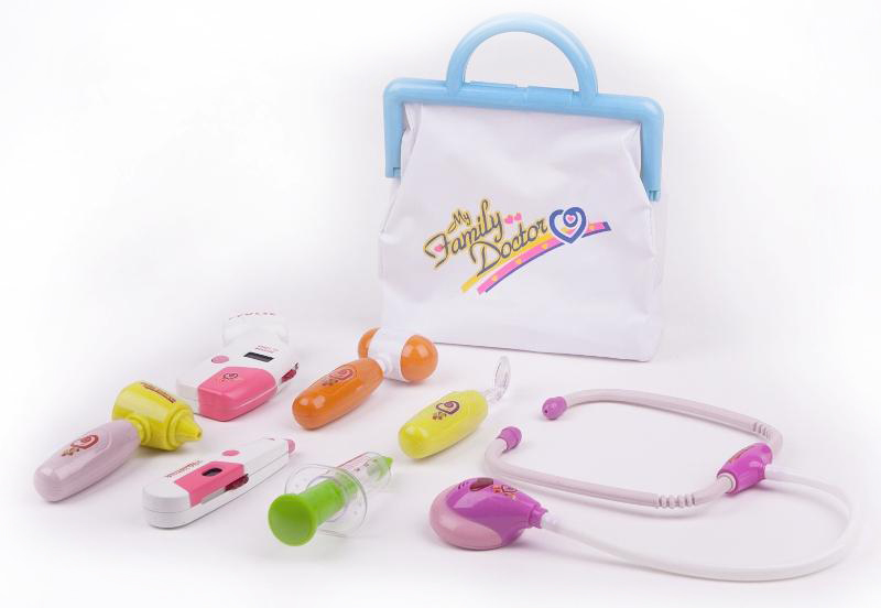 Poszczególne elementy zestawu są imitacjami prawdziwych przyrządów lekarskich, którym nadano przyjazne kształty i żywe kolory.